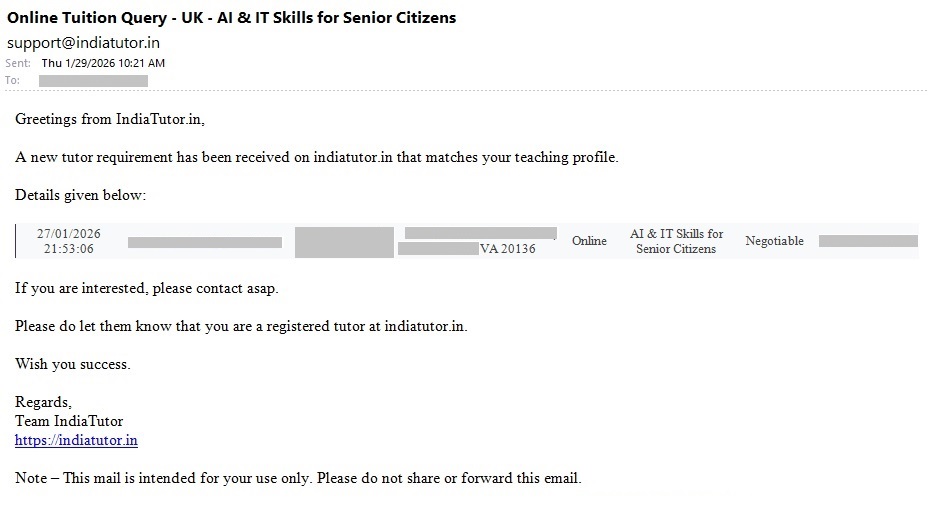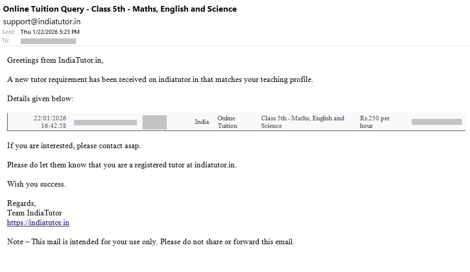 At IndiaTutor.in, we believe that quality education begins with the right teacher. A good tutor can transform learning, boost confidence, and help every student reach their full potential. Join IndiaTutor.in today and take the next step toward better teaching and better learning.